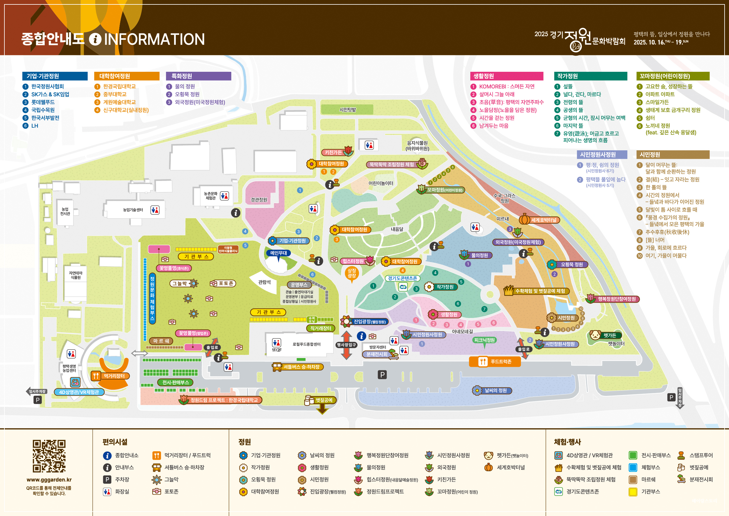 전문 작가가 꾸민 정원부터 기업·기관 정원, 생활 정원, 시민 정원, 대학참여 정원, 꼬마 정원까지! 다양한 디자인과 컨셉의 정원들을 한눈에 볼 수 있어요. 산책하며 사진 찍기에도 정말 좋겠죠?